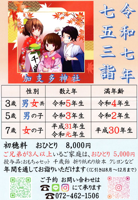 加支多神社では七五三詣の受付をいたしております。